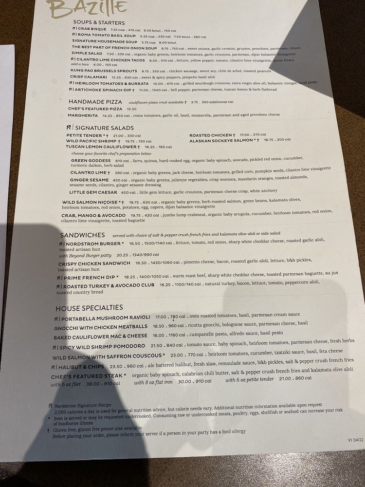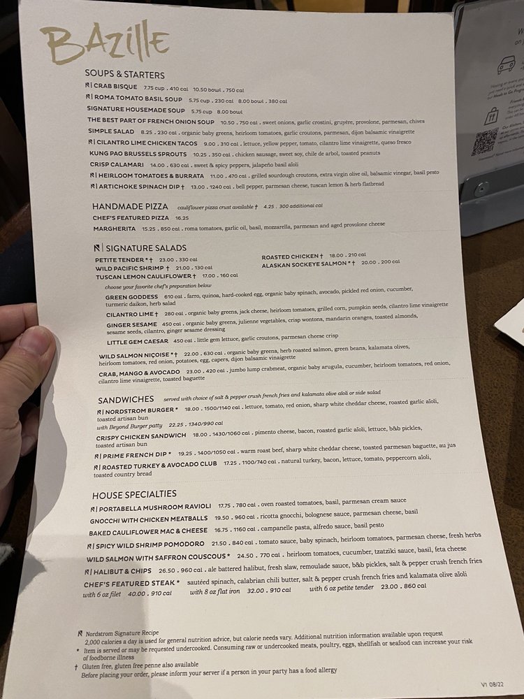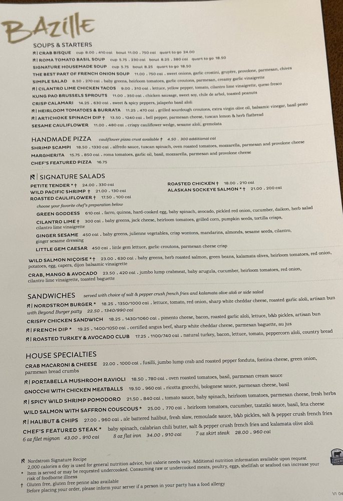 Nestled within the Nordstrom at Stanford Shopping Center, Bazille offers a fresh take on New American cuisine, featuring an impressive array of handcrafted dishes. Their menu spotlights mouthwatering handmade pizzas, including the classic Margherita and indulgent Truffle Mushroom, both bursting with vibrant flavors from high-quality ingredients like aged cheeses and fresh herbs. For those in search of heartier fare, the French Dip and Nordstrom Burger are standout choices, crafted with attention to detail and rich flavors.